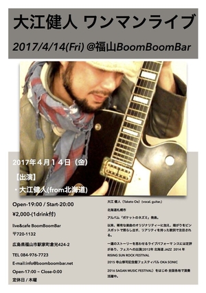 2018/1/28(日) 『佐々木リョウ弾き語り自走TOUR2018@福山BoomBoomBar』 【出演】 ・佐々木リョウ OPEN-18:30 / START-19:00 ¥2,50...