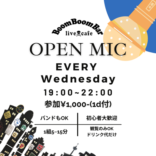 [Cherge]オープンマイク参加の方は¥1,000-(1drink付)となります。